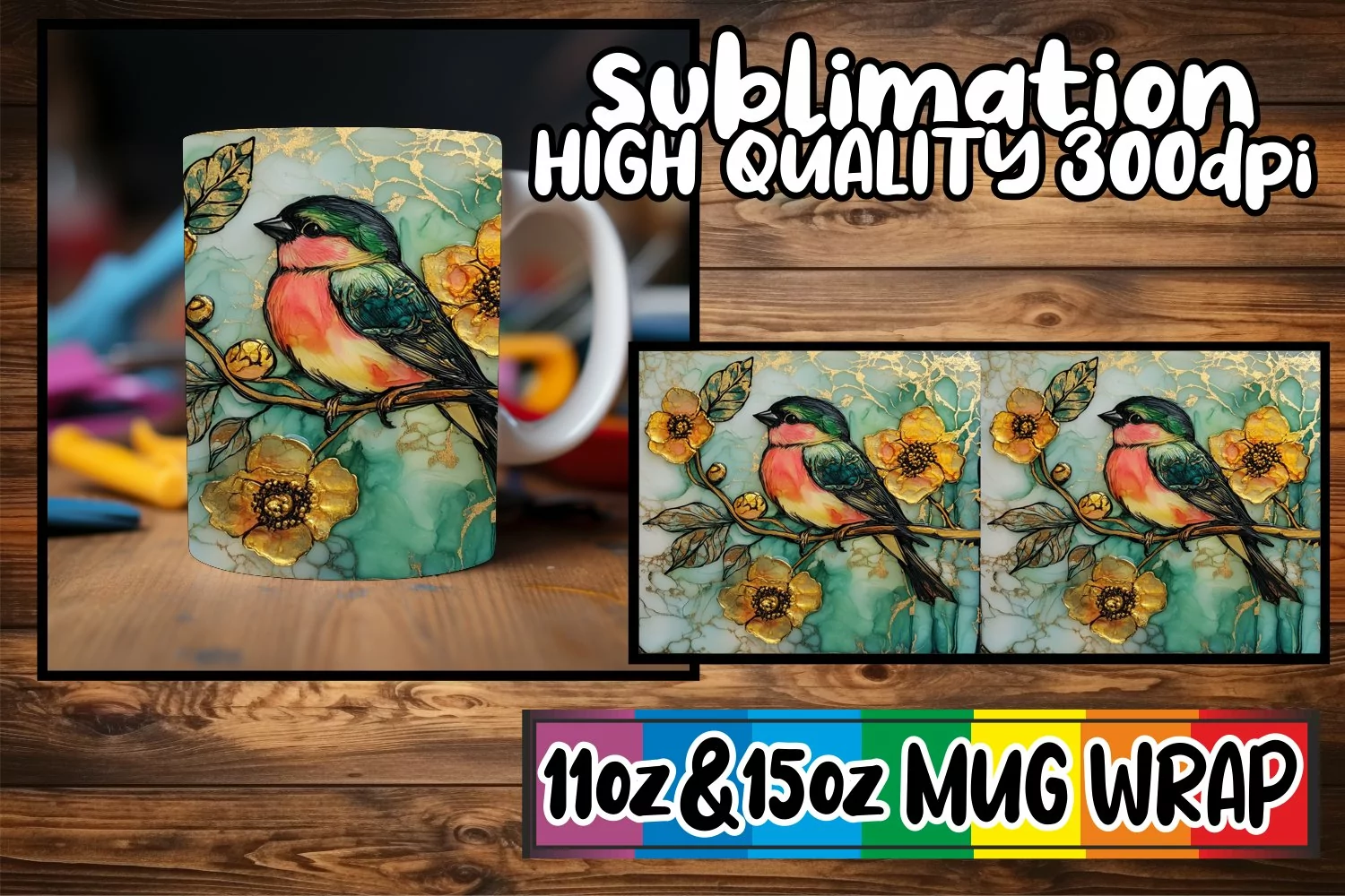 Bright spirits 11oz 15oz sublimation wrap, 3D Bird