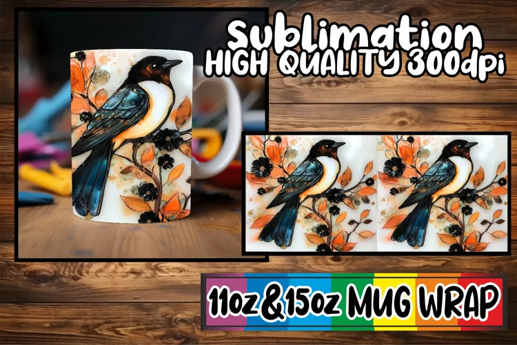 Cheerful memories 11oz 15oz sublimation wrap, 3D Bird