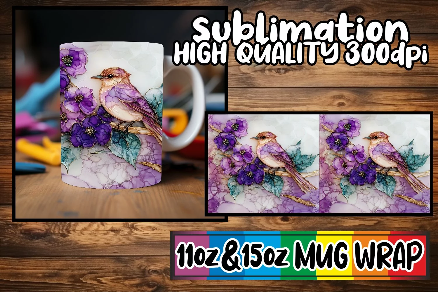 Blissful heart 11oz 15oz sublimation wrap, 3D Bird