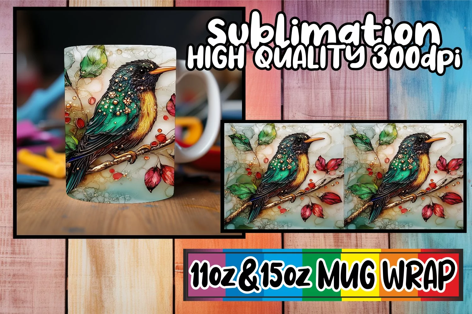 Bright love 11oz 15oz sublimation wrap, 3D Bird