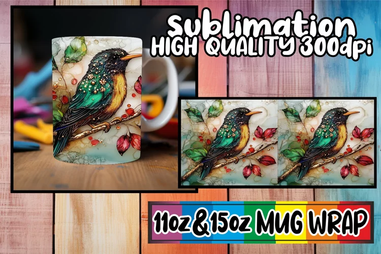 Bright love 11oz 15oz sublimation wrap, 3D Bird example image 1