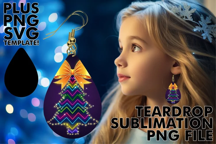 BLISSFUL Teardrop Earrings PNG Ideas, Neon Xmas example image 1