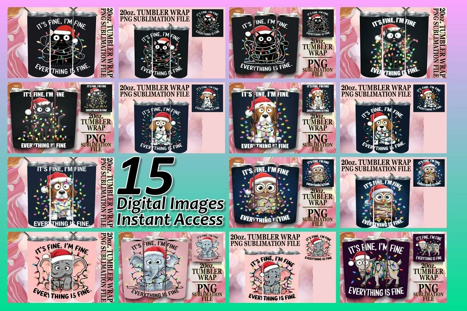 15x Tumbler Sublimation Wrap Bundle 20oz , Xmas