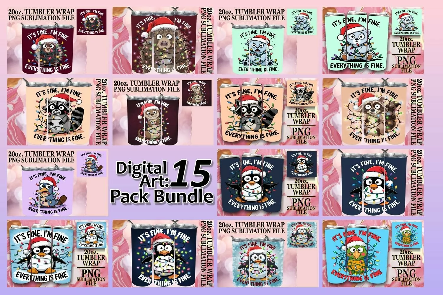 15x 20oz Tumbler Wrap Design Bundle Pack , Xmas