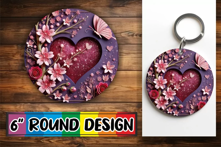 Radiant Keychain Circle Style, 3D Heart example image 1