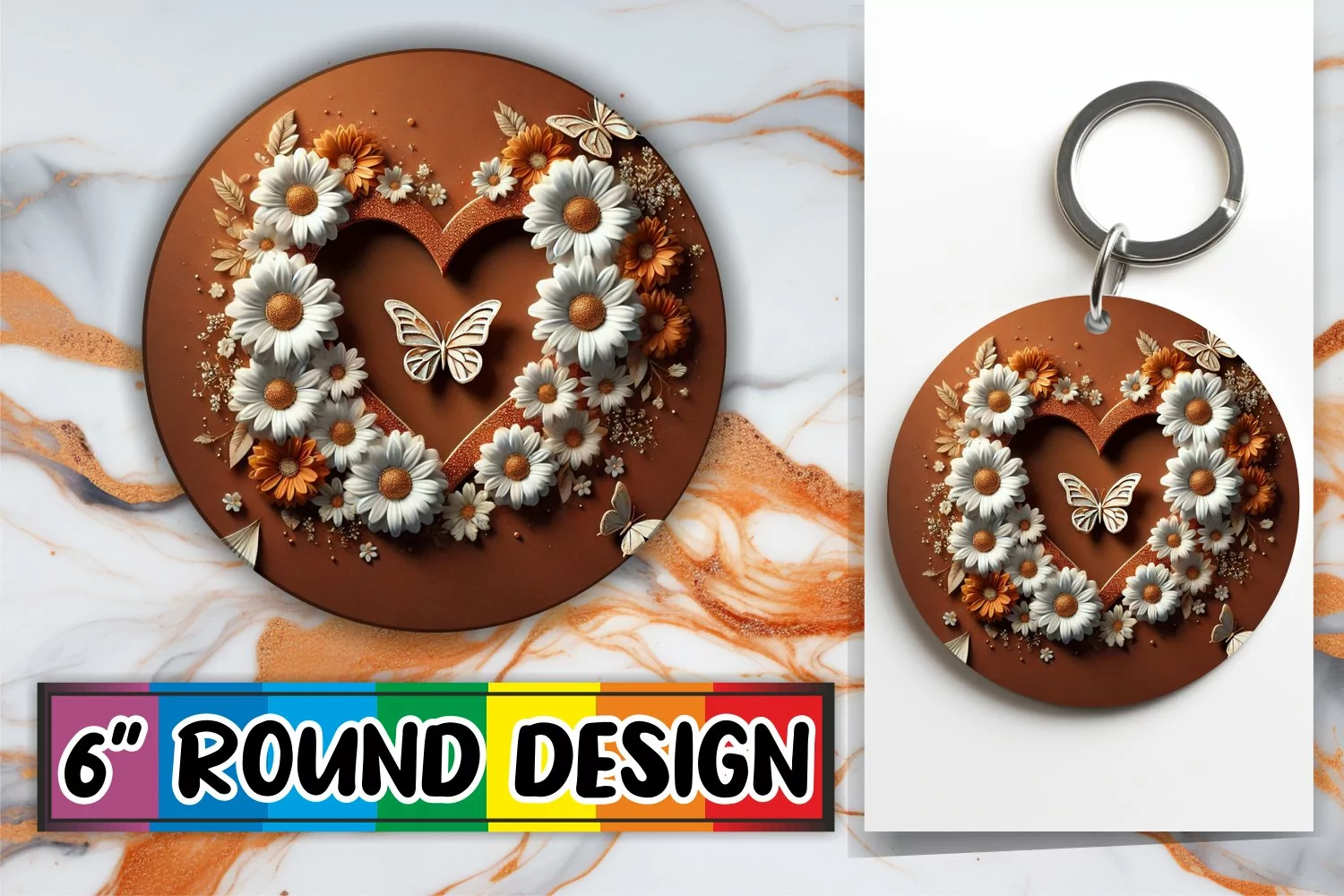 Playful Circle Keychain Sublimation, 3D Heart