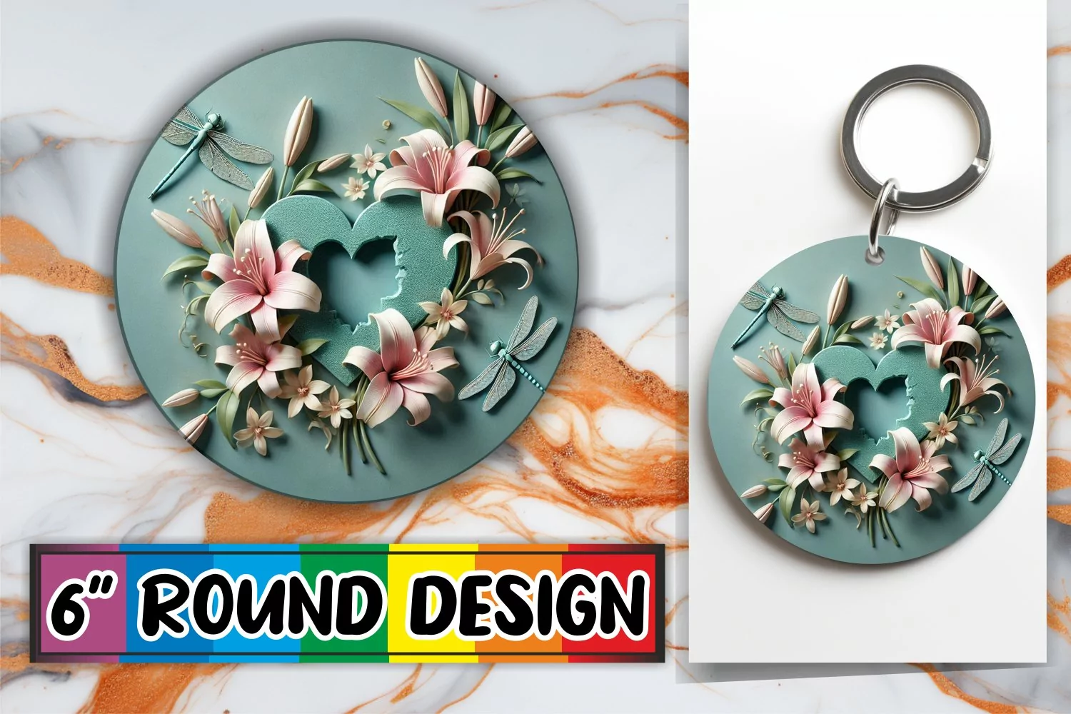 Radiant Round Coaster Design PNG, 3D Heart example image 1
