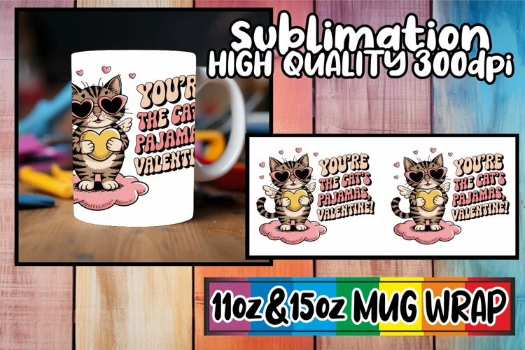 Happy dreams 11oz 15oz sublimation wrap, Valentines Cat example image 1