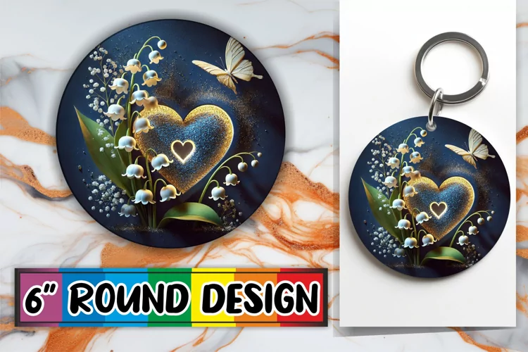 Enchanted Keychain Round Sublimation PNG, 3D Heart