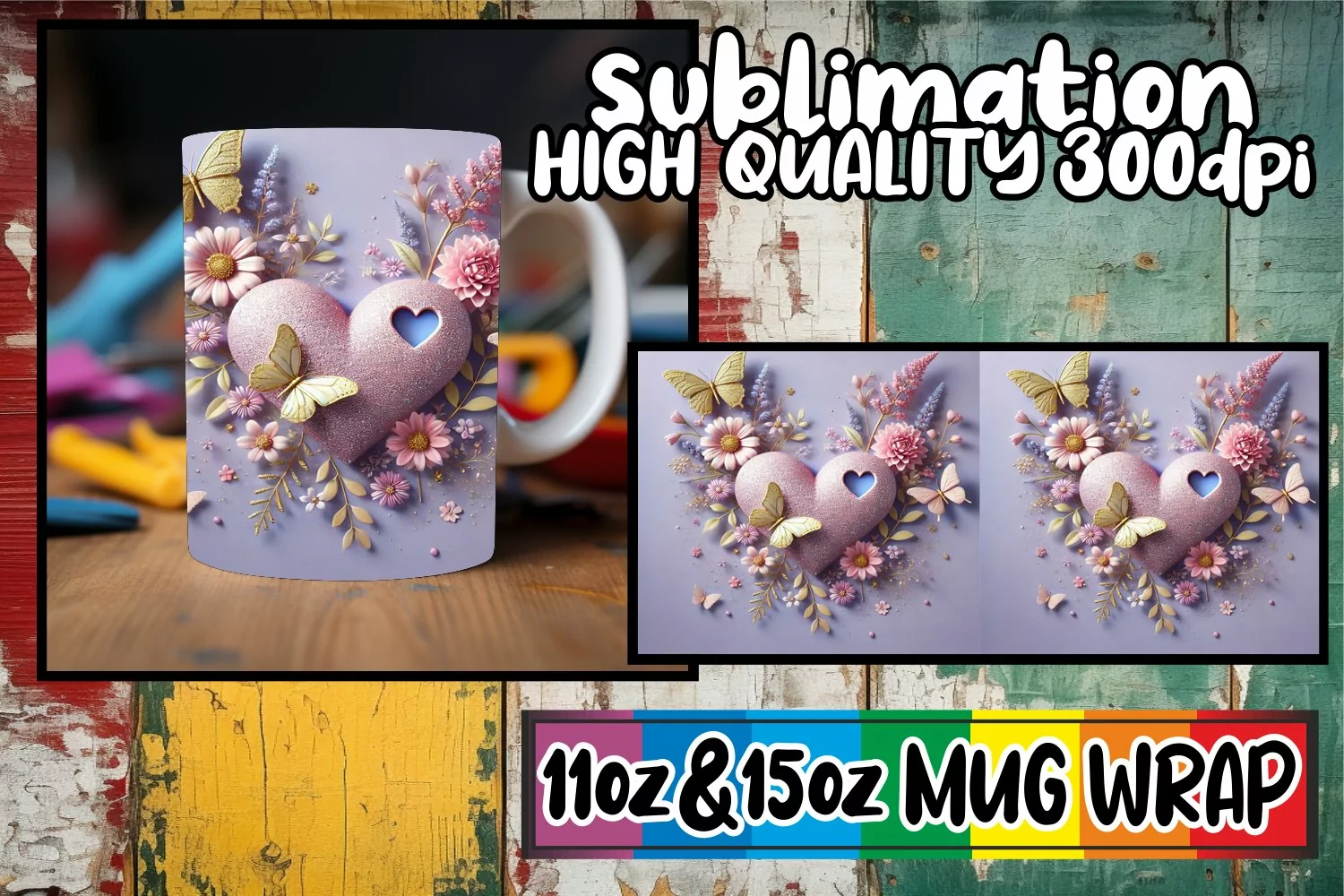 Radiant dreams 11oz 15oz mug wrap, 3D Heart
