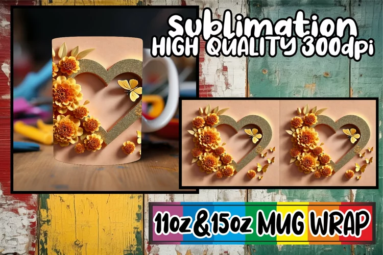 Similar Design Products to Heartfelt wishes 11oz 15oz mug wrap, 3D Heart