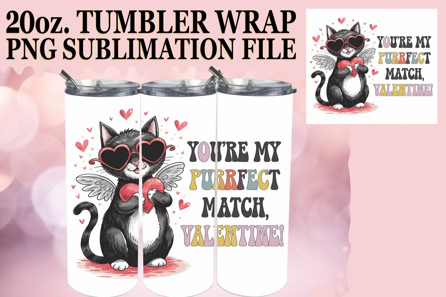 Cozy Escapes 20oz tumbler wrap, Valentines Cat example image 1
