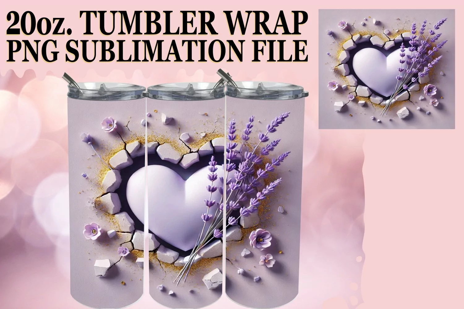 Similar Design Products to BLISSFUL DAYS 20oz TUMBLER WRAP, 3D Heart