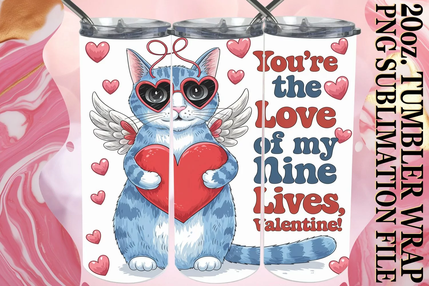 LUMINOUS ADVENTURES 20oz TUMBLER WRAP, Valentines Cat example image 1