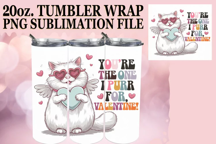 ENCHANTING JOY 20oz TUMBLER WRAP, Valentines Cat example image 1