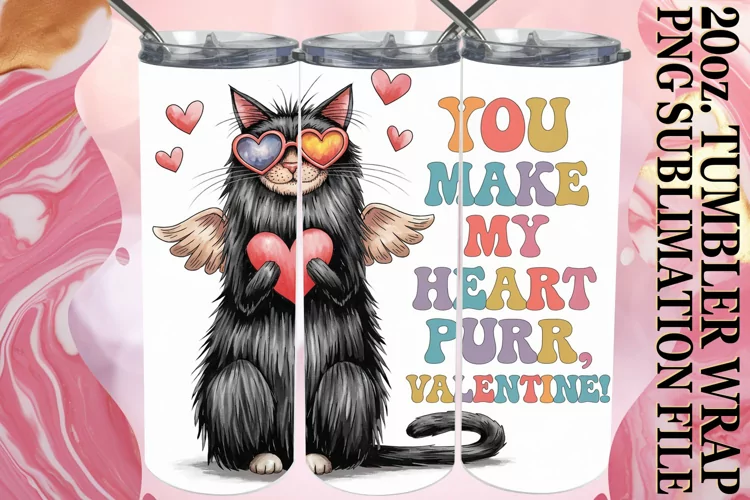 GENTLE SPIRITS 20oz TUMBLER WRAP, Valentines Cat example image 1
