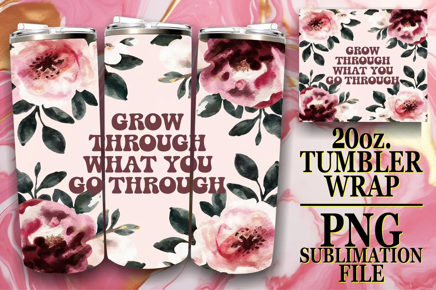 Radiant days 20oz tumbler wrap, Flower Quote example image 1
