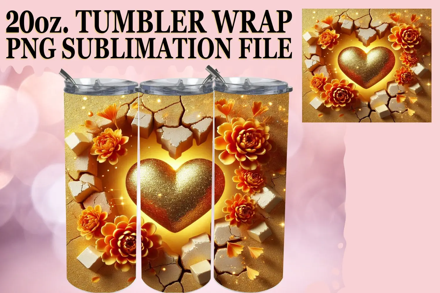 Similar Design Products to Joyful Adventures 20oz tumbler wrap, 3D Heart
