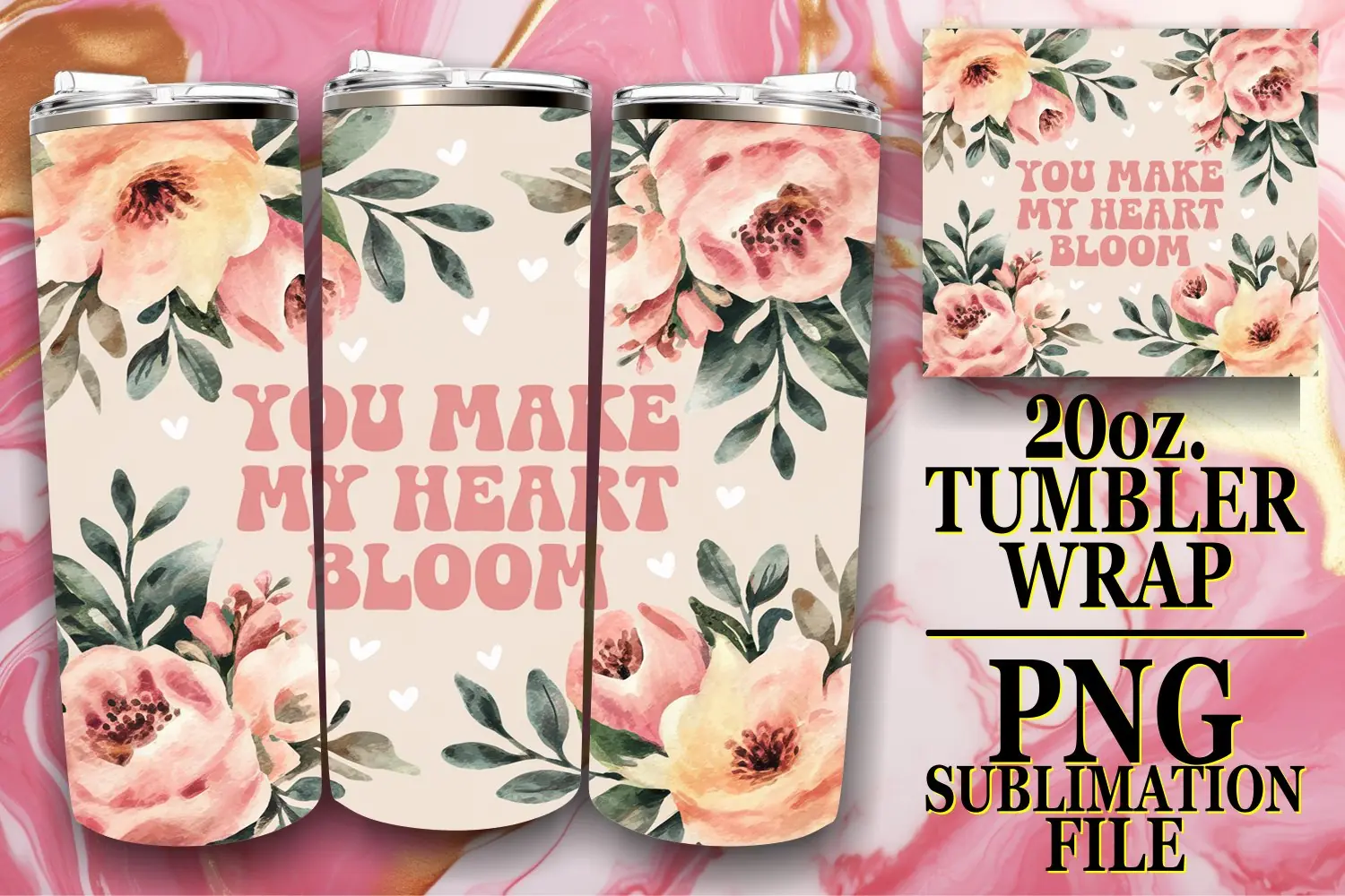 Create beautiful, ized tumblers with our **20 oz Skinny Tumbler Wrap** sublimation template.