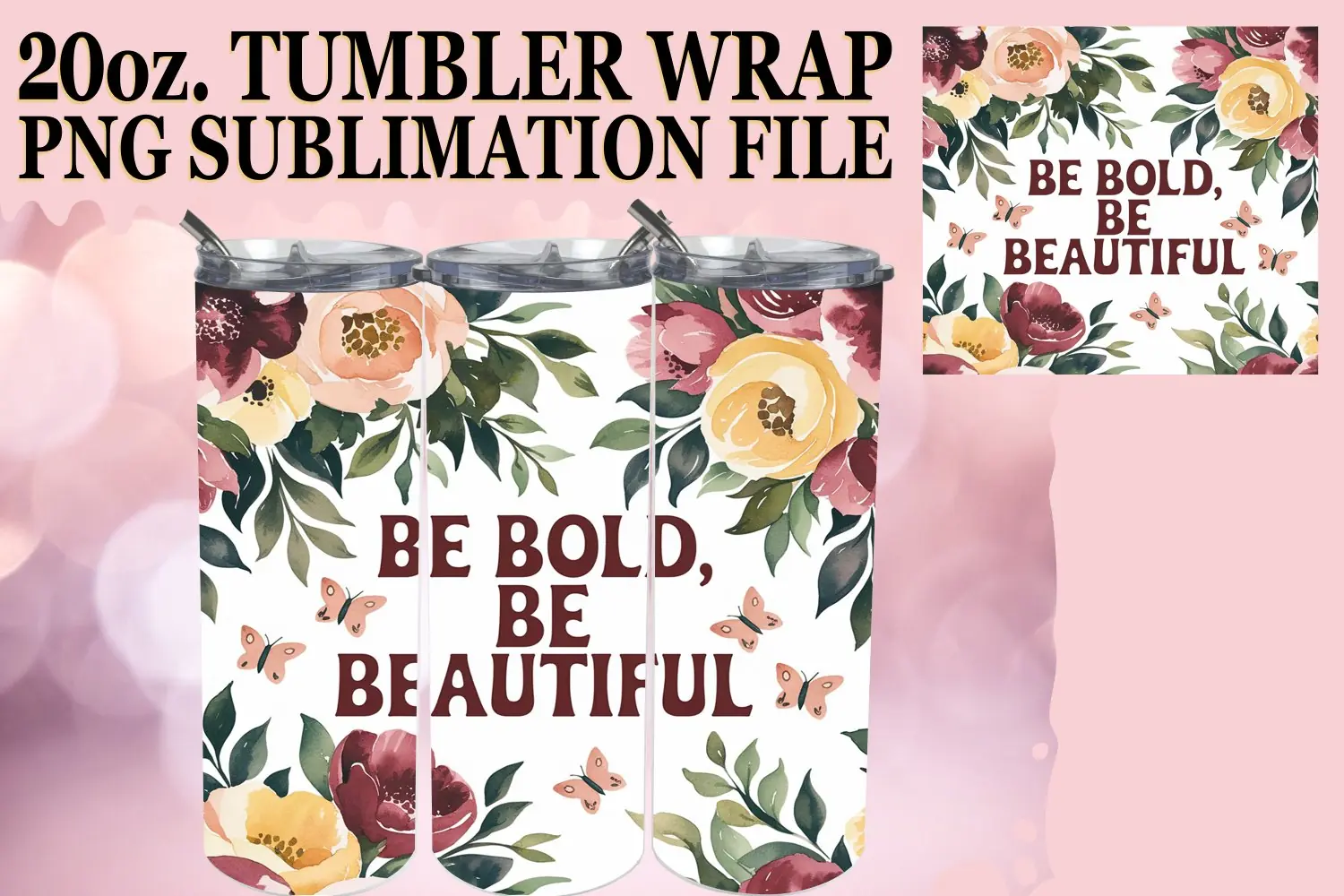 Similar Design Products to Cozy Dreams 20oz tumbler wrap, Flower Quote