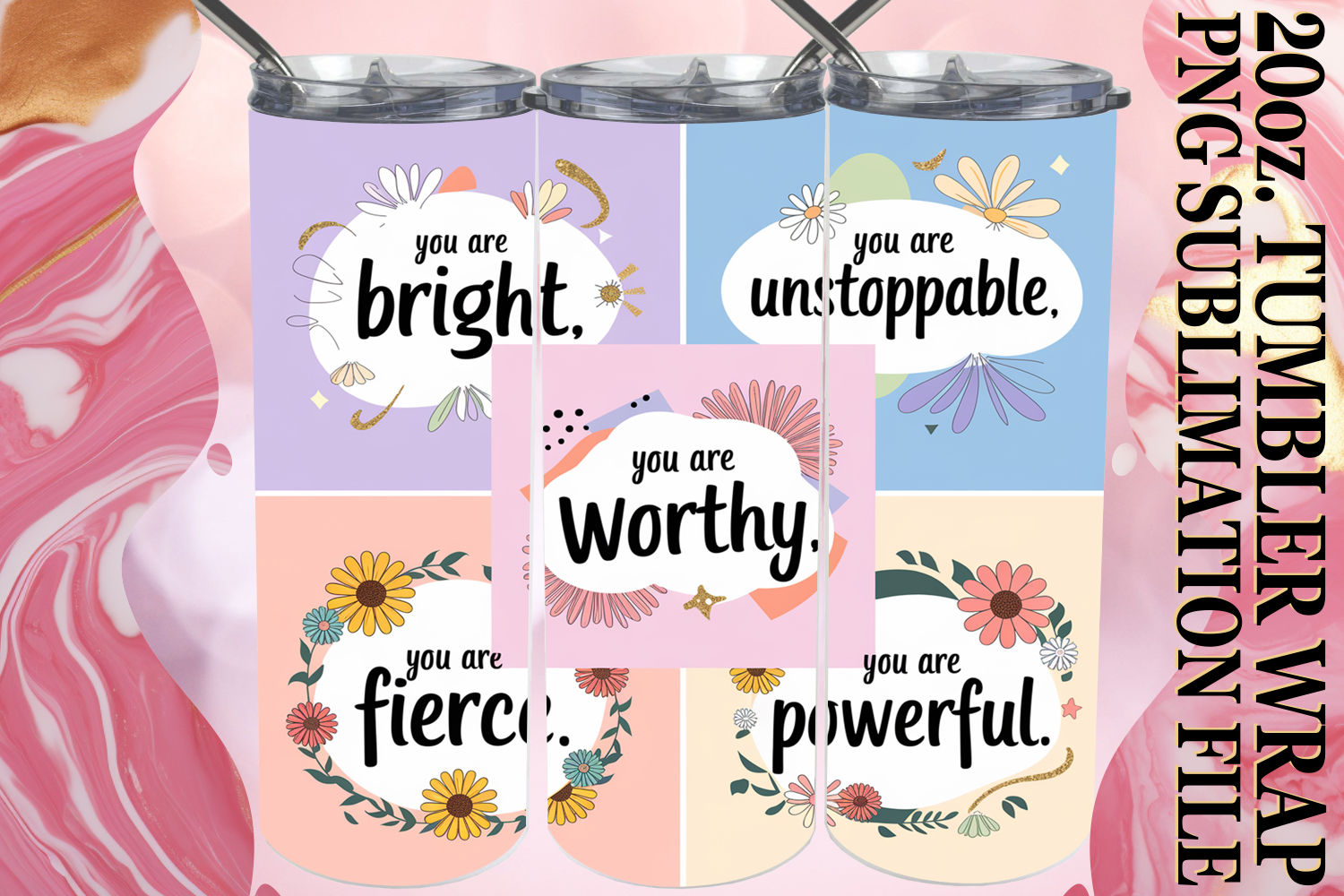 Create eye-catching tumblers with our gorgeous **20 oz Skinny Tumbler Wrap** sublimation design.