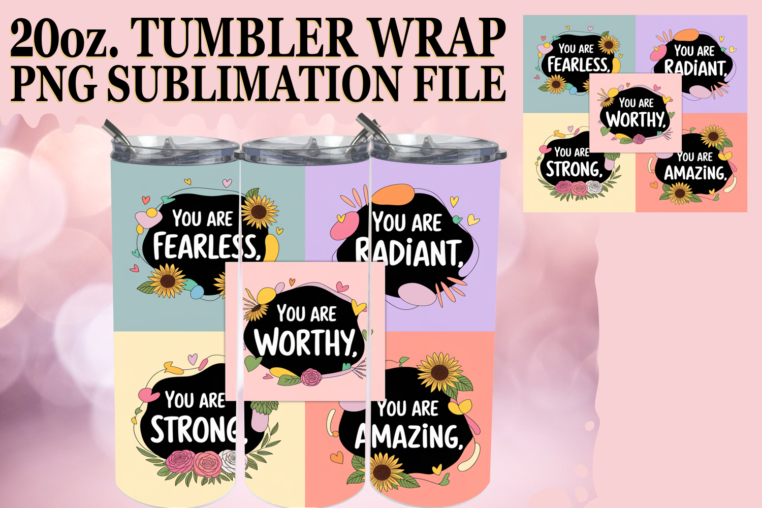 Create eye-catching tumblers with our gorgeous **20 oz Skinny Tumbler Wrap** sublimation design.