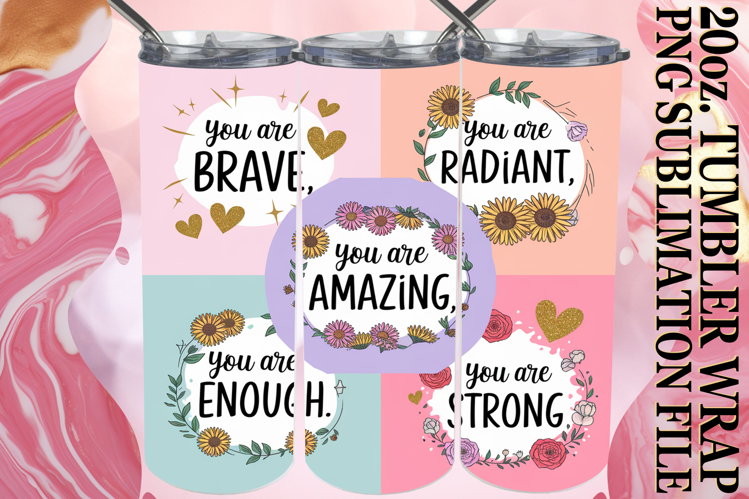 Create eye-catching tumblers with our gorgeous **20 oz Skinny Tumbler Wrap** sublimation design.