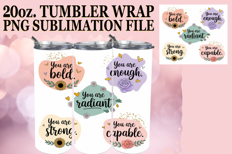 Create beautiful, ized tumblers with our **20 oz Skinny Tumbler Wrap** sublimation template.