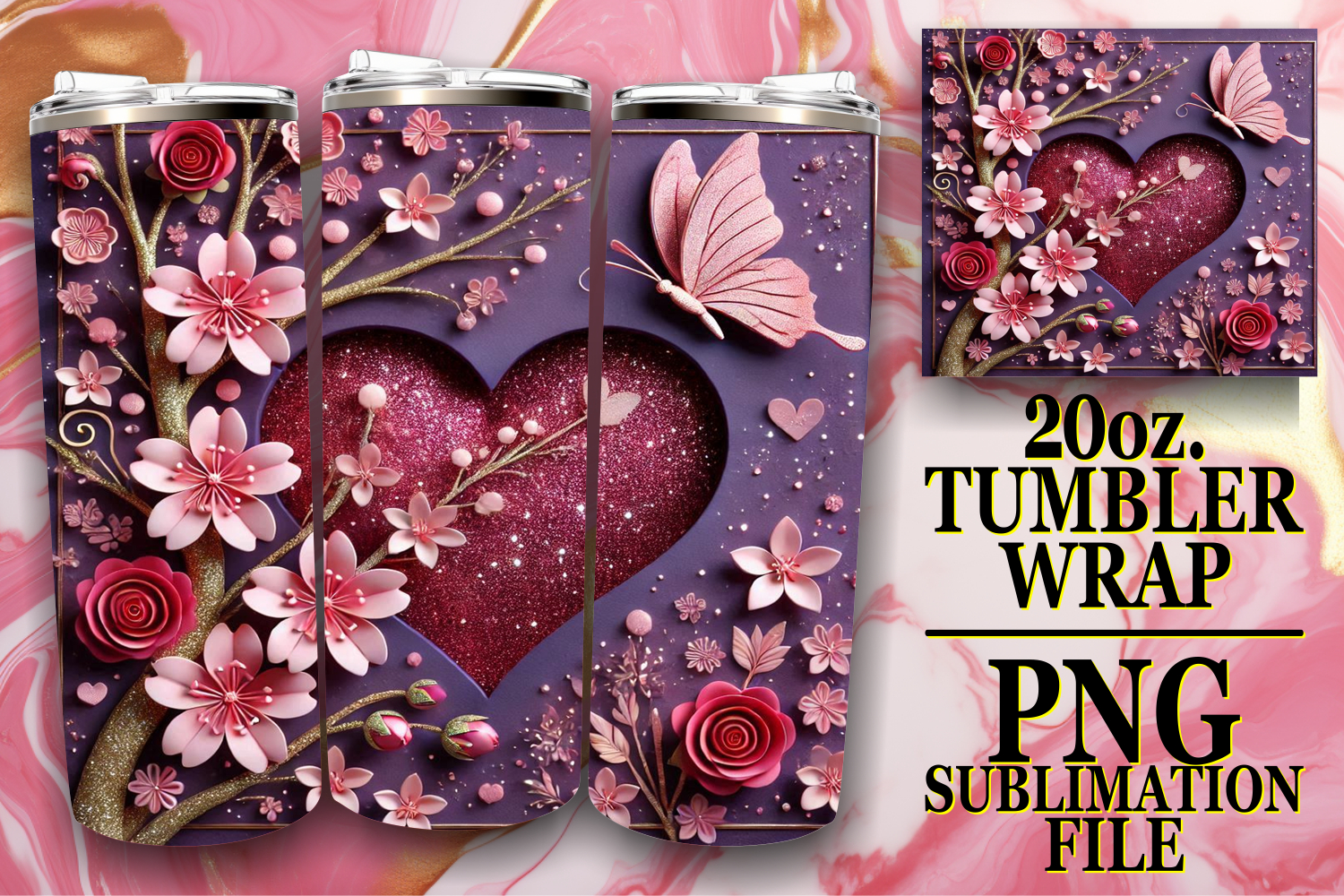 Similar Design Products to CHEERFUL PRESENT 20oz TUMBLER WRAP, 3D Heart