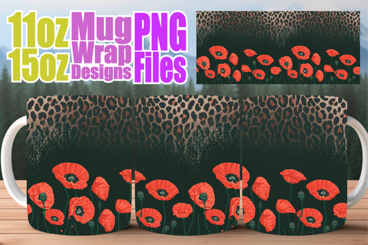Blissful days 11oz 15oz mug wrap, Leopard Prints