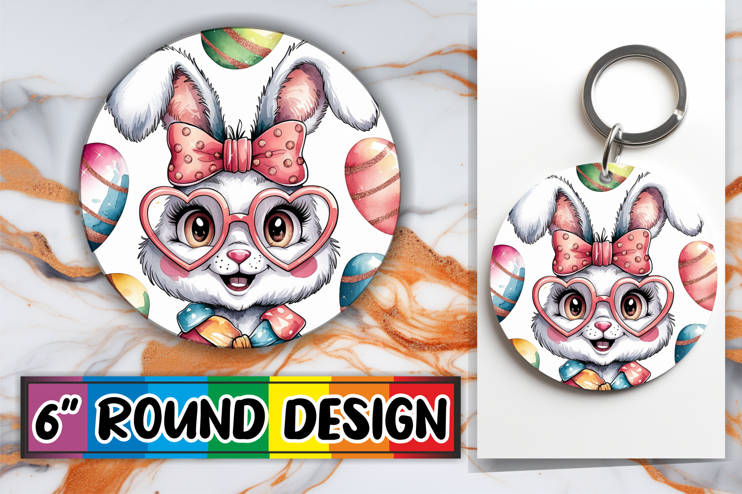 Similar Design Products to Whimsical Circle Keychain Sublimation PNG, Easter Bunny