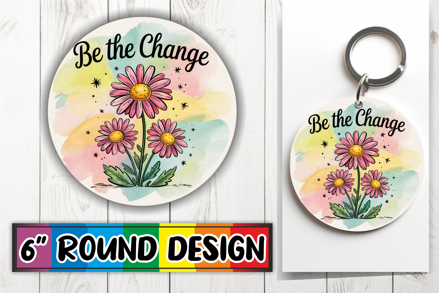 Cheerful Keychain Round Design PNG, Flowers Quote example image 1