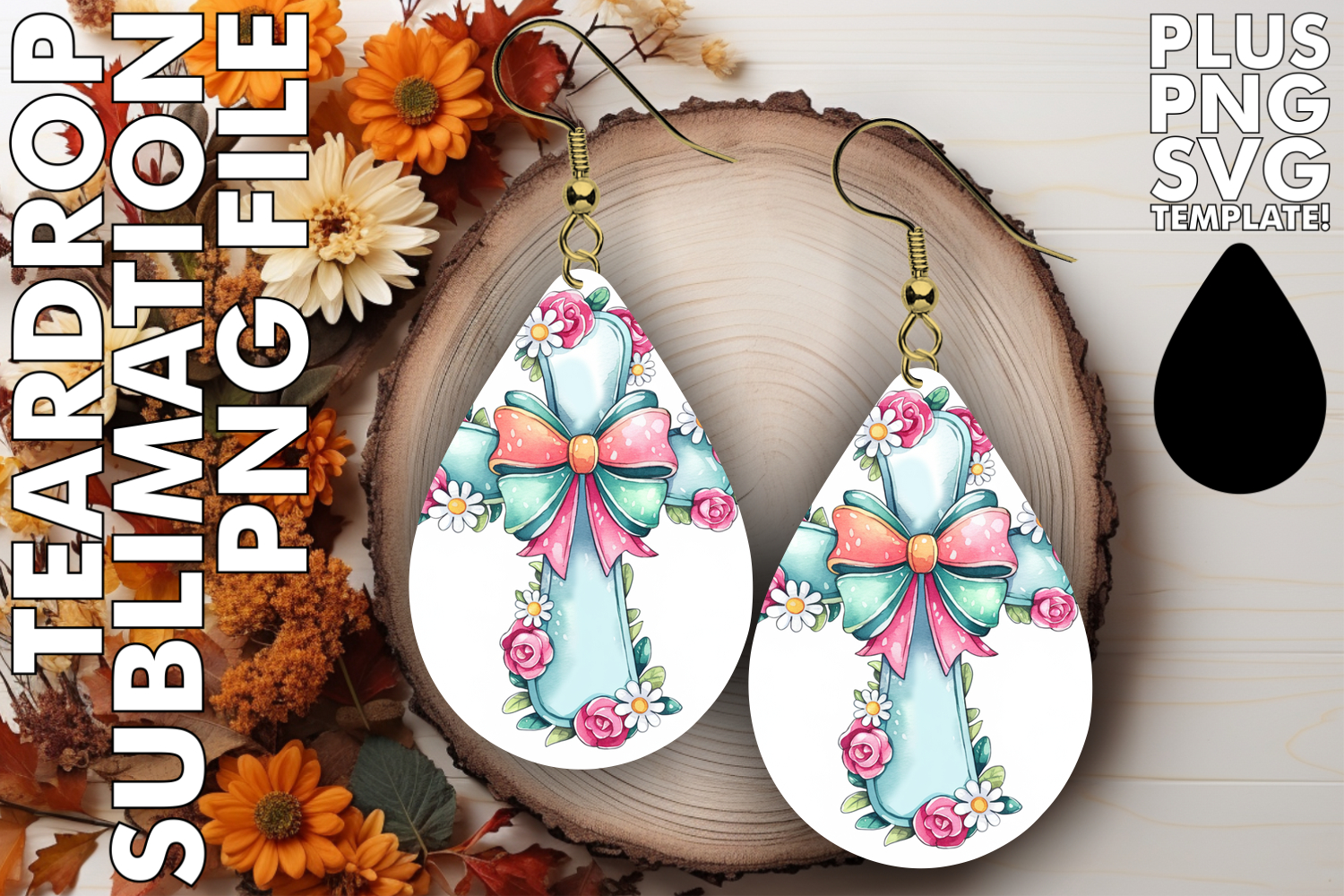 Whimsical Teardrop Earrings Art, Flower Cross example image 1