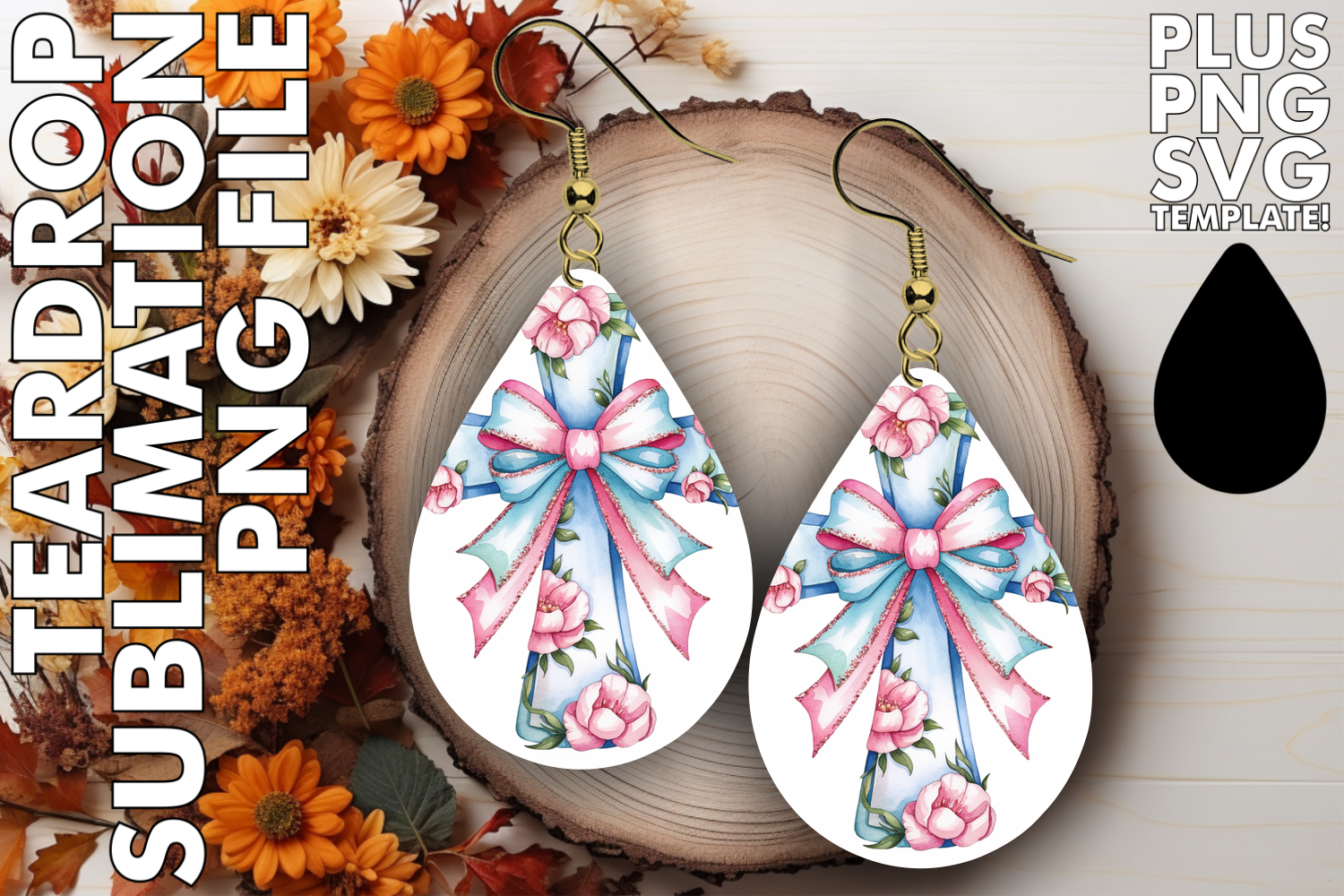 Similar Design Products to RADIANT Teardrop Earrings Sublimation, Flower Cross