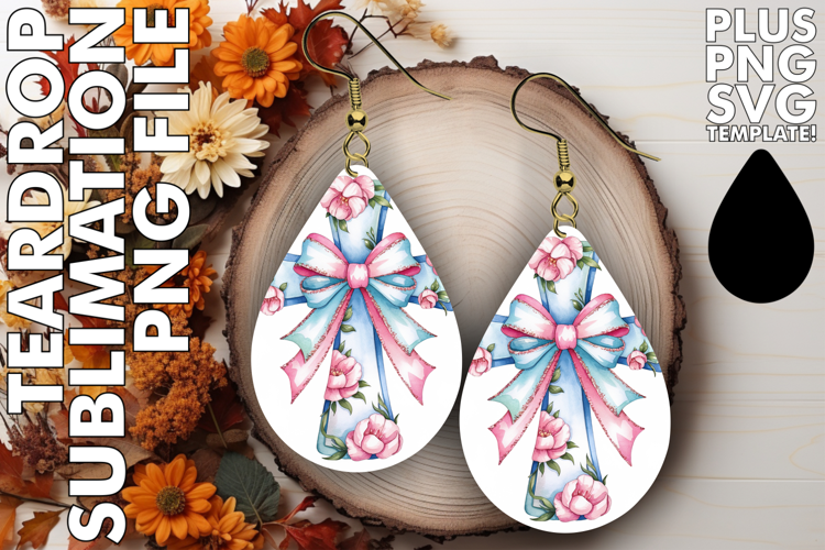 RADIANT Teardrop Earrings Sublimation, Flower Cross example image 1