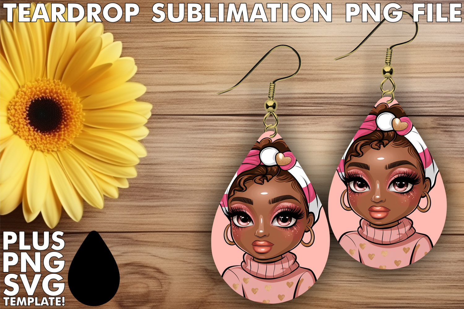 Joyful Teardrop Earrings Sublimation, Afro Girl example image 1