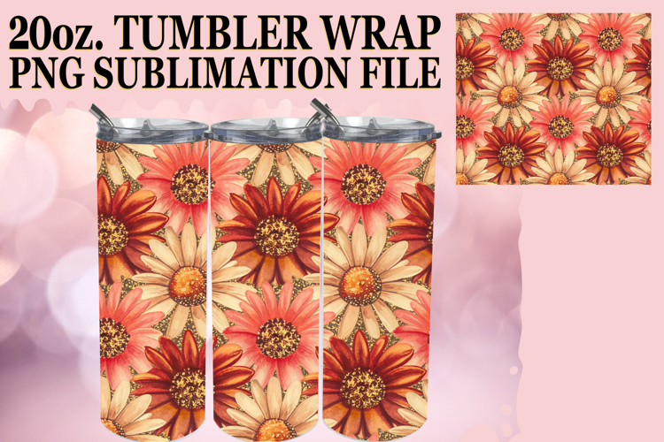 Bright Sublimation 20oz tumbler wrap, Flower Pattern example image 1