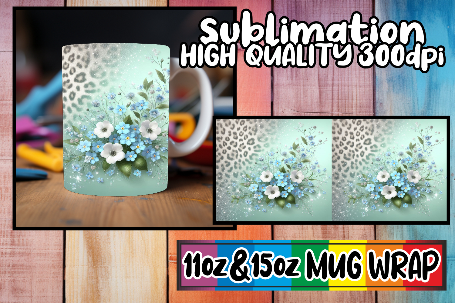 Bright adventures 11oz 15oz mug wrap, Leopard Prints