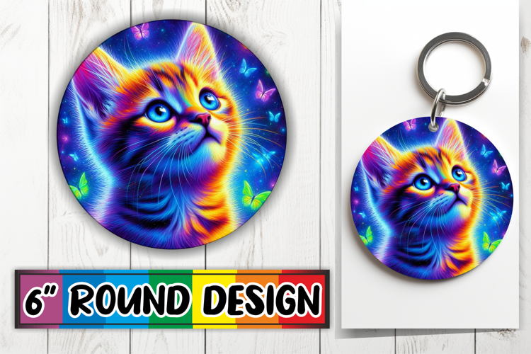 Whimsical Circle Keychain Sublimation, Cat example image 1