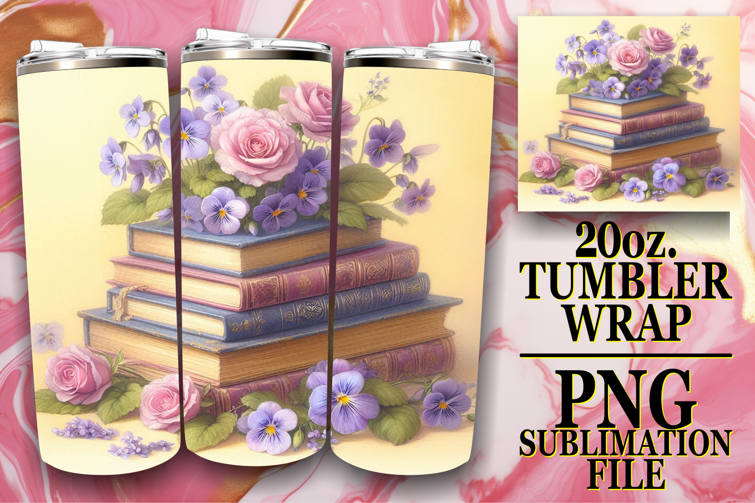 Sweet Joy 20oz tumbler wrap, Book and flower example image 1