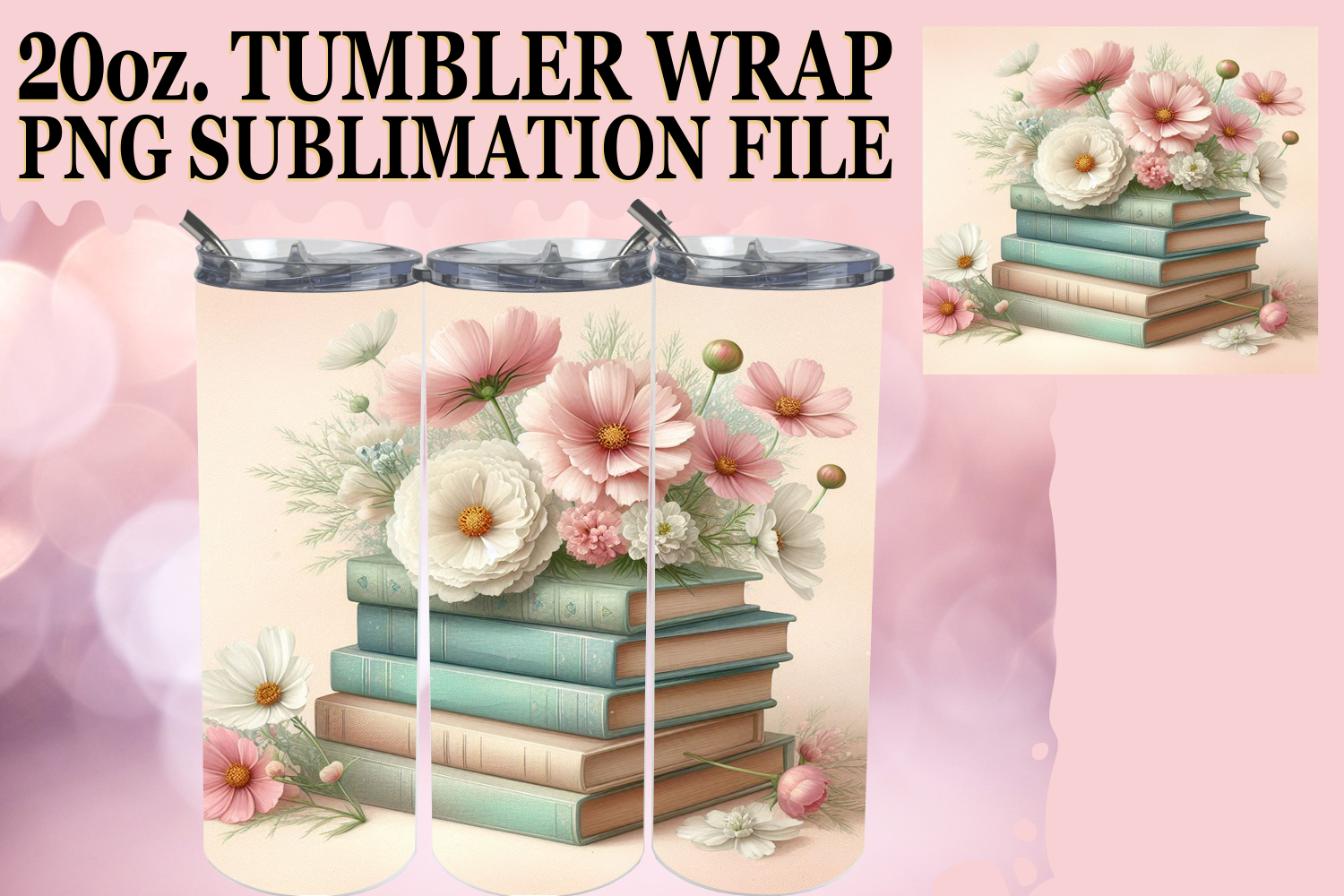 Bright mornings 20oz tumbler wrap, Book and flower example image 1