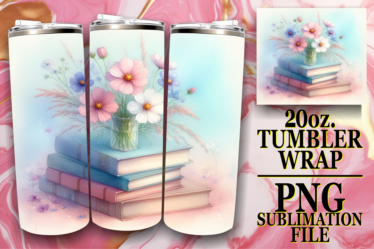 Enchanted vibes 20oz tumbler wrap, Book and flower example image 1