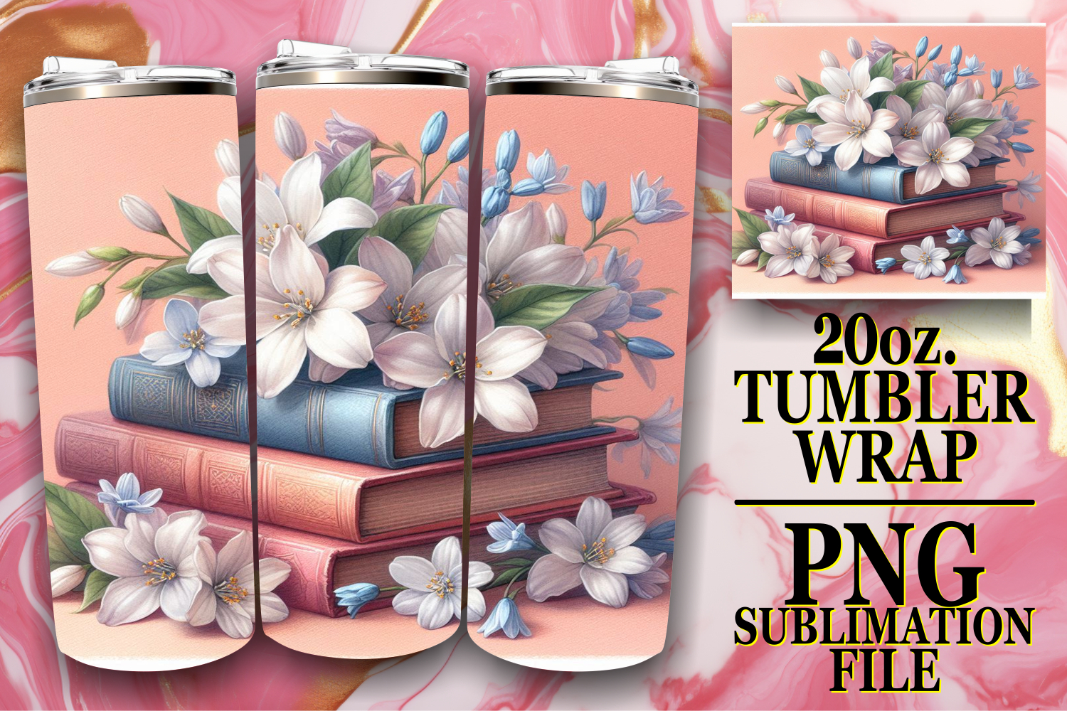 Timeless journeys 20oz tumbler wrap, Book and flower example image 1