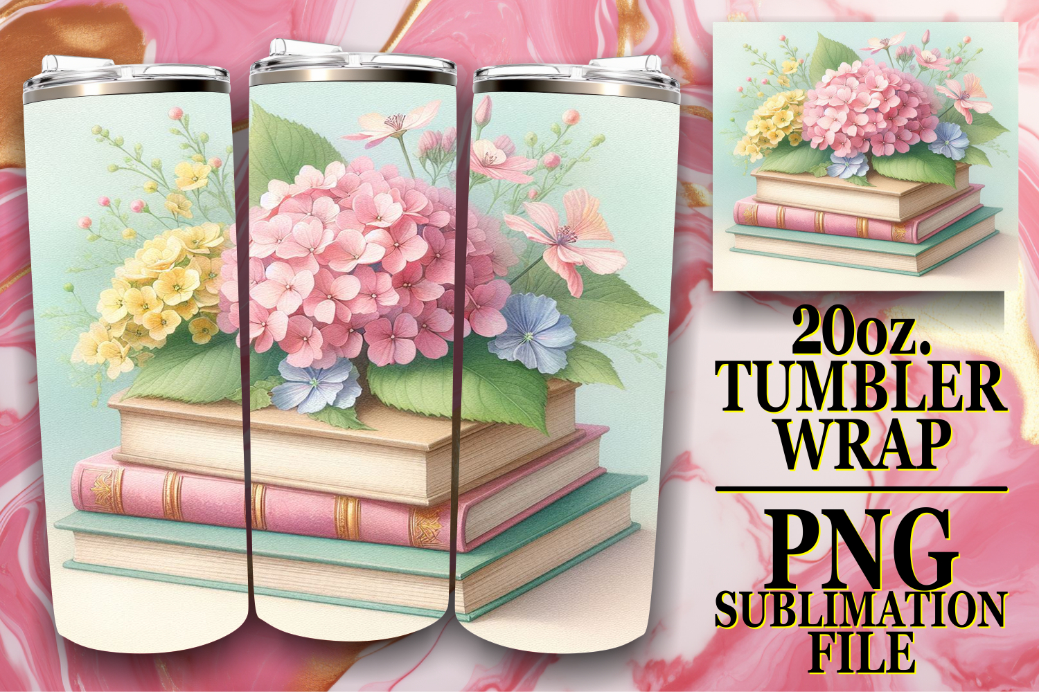 Vibrant Thoughts 20oz tumbler wrap, Book and flower example image 1