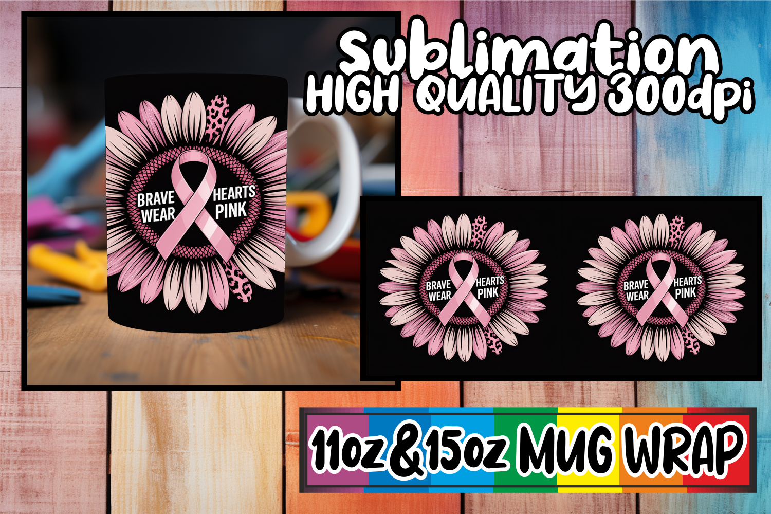 Similar Design Products to Vibrant joy 11oz 15oz sublimation wrap, Breast Cancer