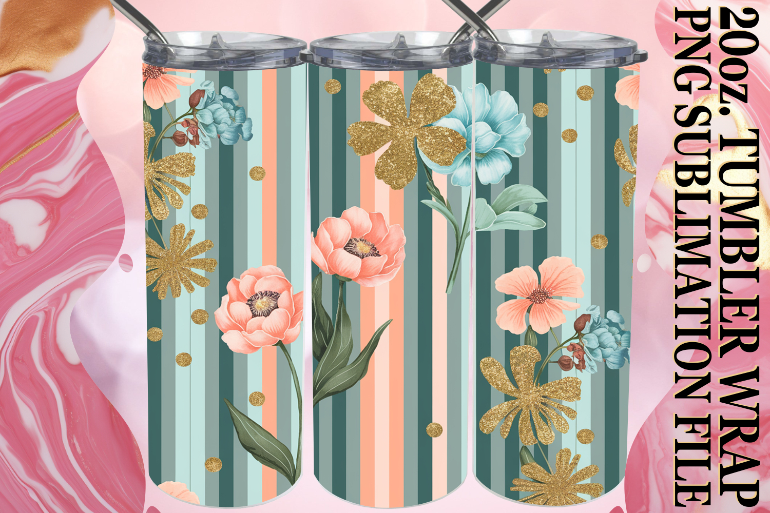 Radiant Smiles 20oz tumbler wrap, Gold Flower