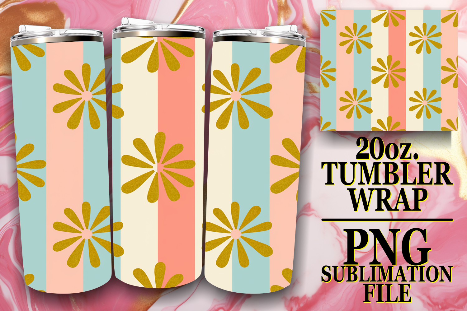 Vibrant Nights 20oz tumbler wrap, Gold Flower