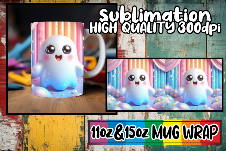 Charming whispers 11oz 15oz sublimation wrap, 3D Cute Ghost example image 1