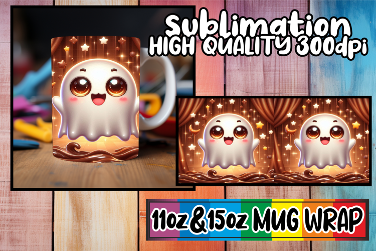 Inspiring mornings 11oz 15oz sublimation wrap, 3D Cute Ghost example image 1