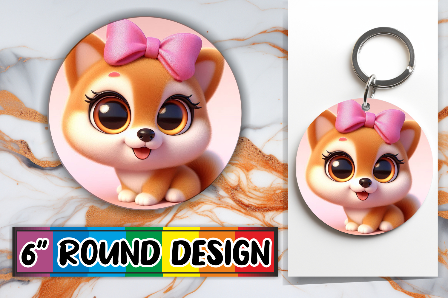 Playful Circle Car Coaster Sublimation, 3D Dog